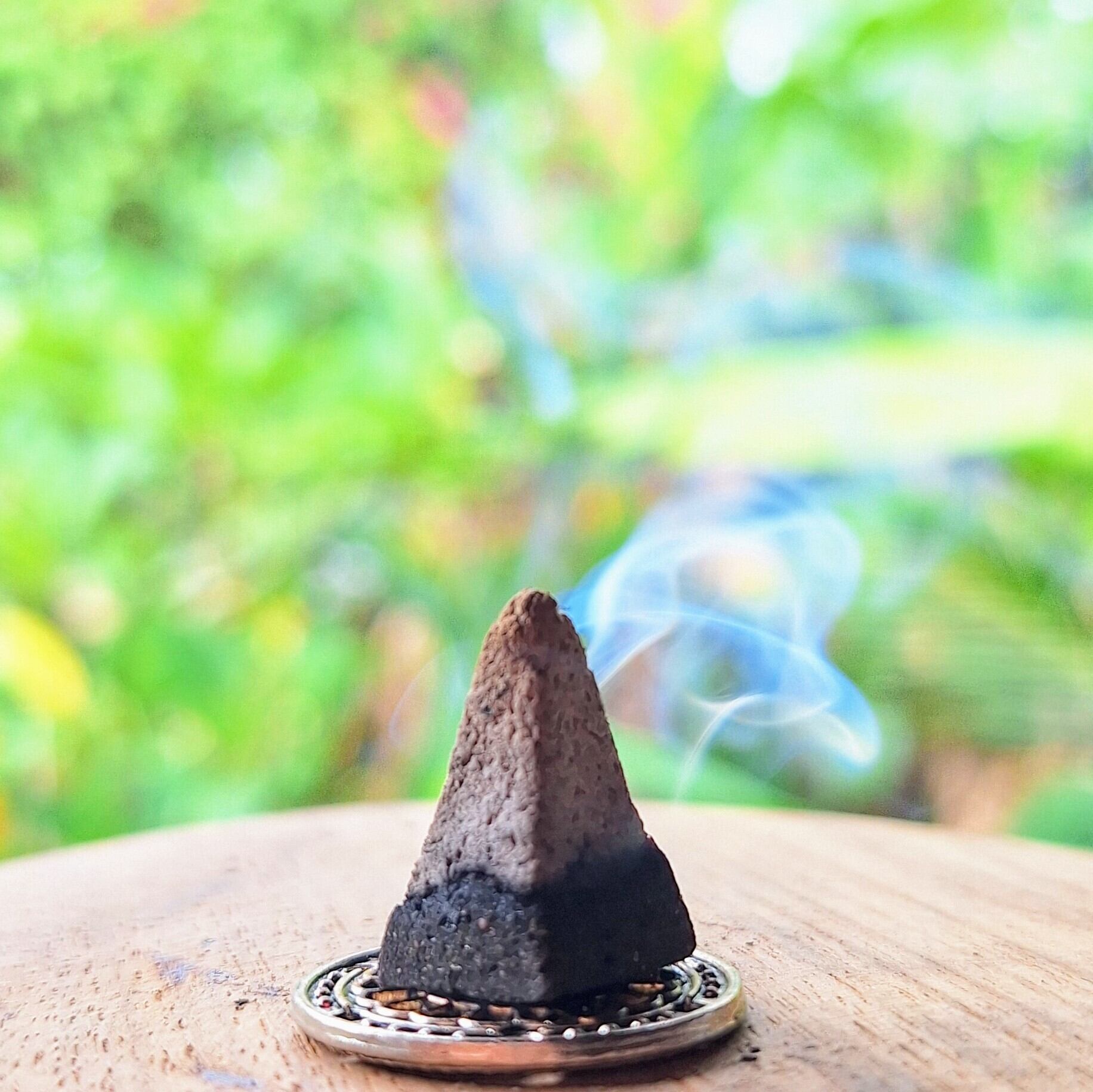 Available as sticks, pyramids, powder, and body-use incense. Pyramid shape enhances energy and purification.