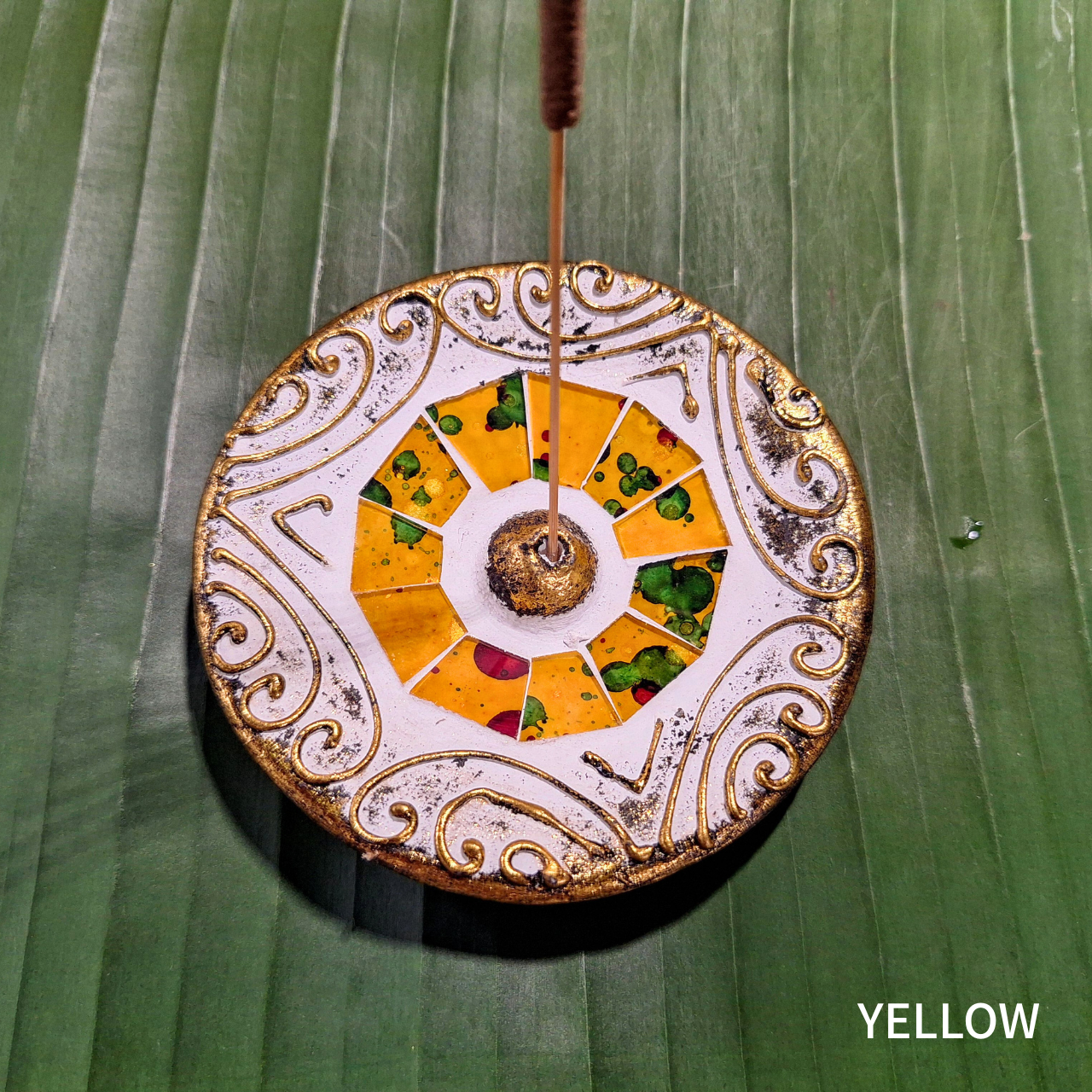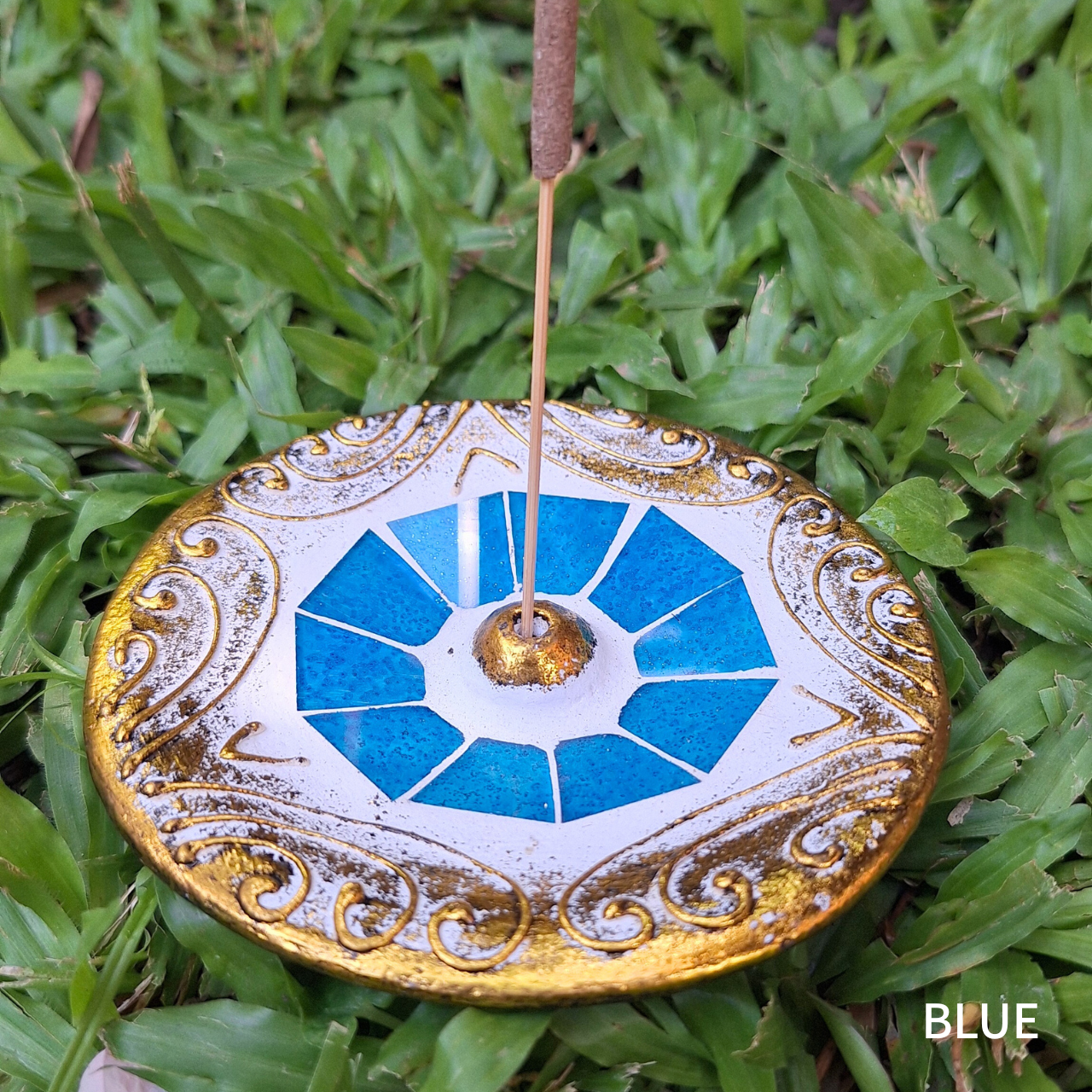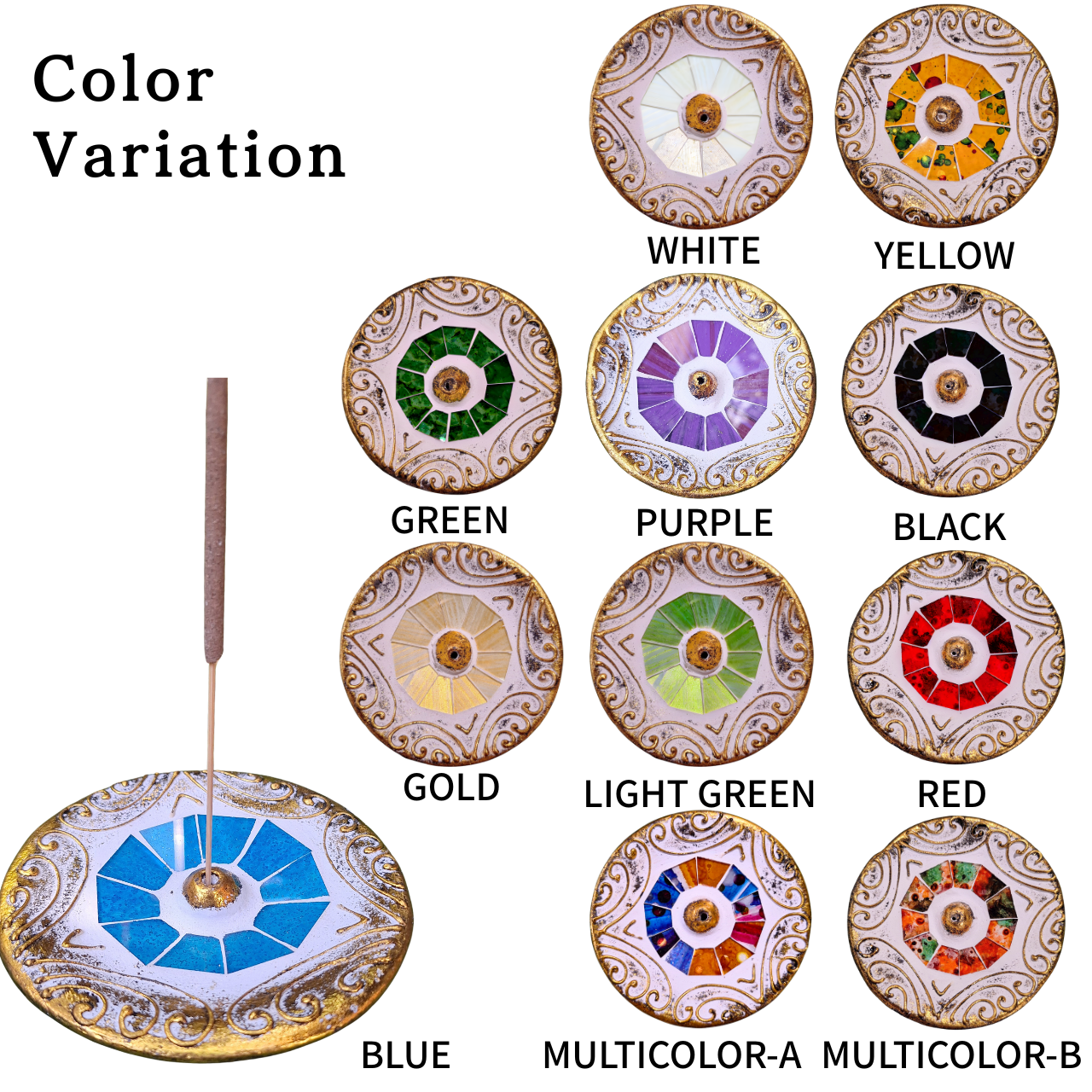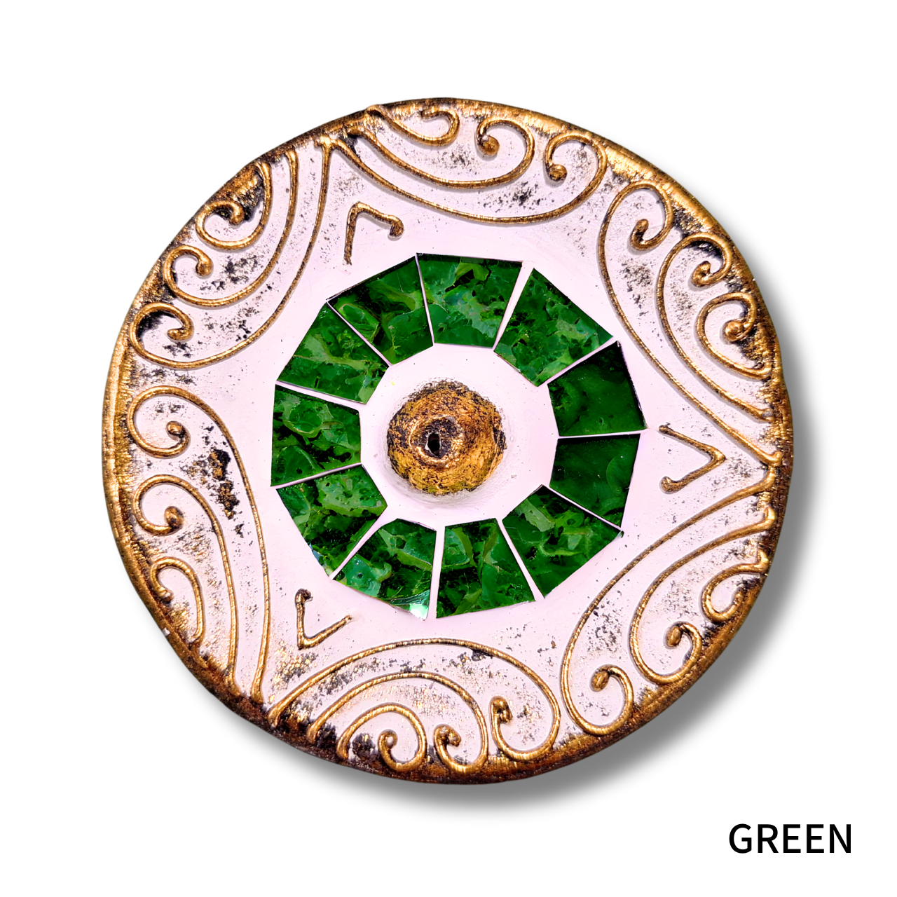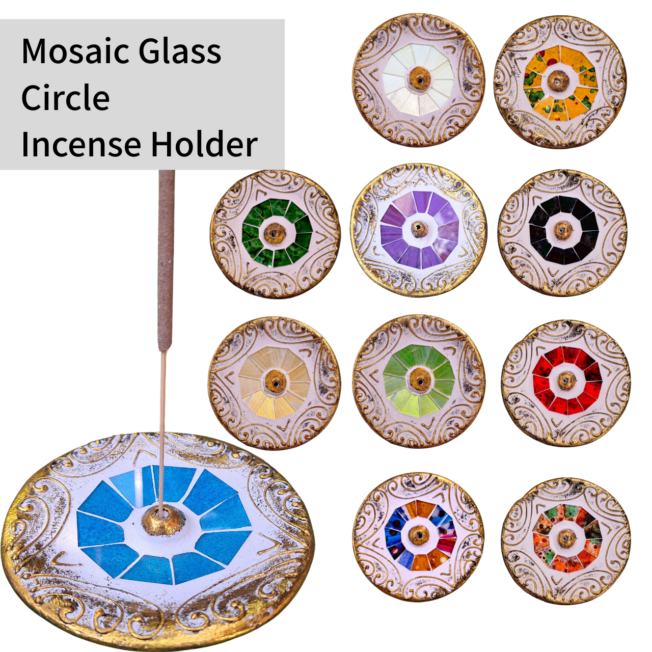 Mosaic Glass Incense Holder “Circle”: Bamboo Stick Incense Stand – Single Stick.