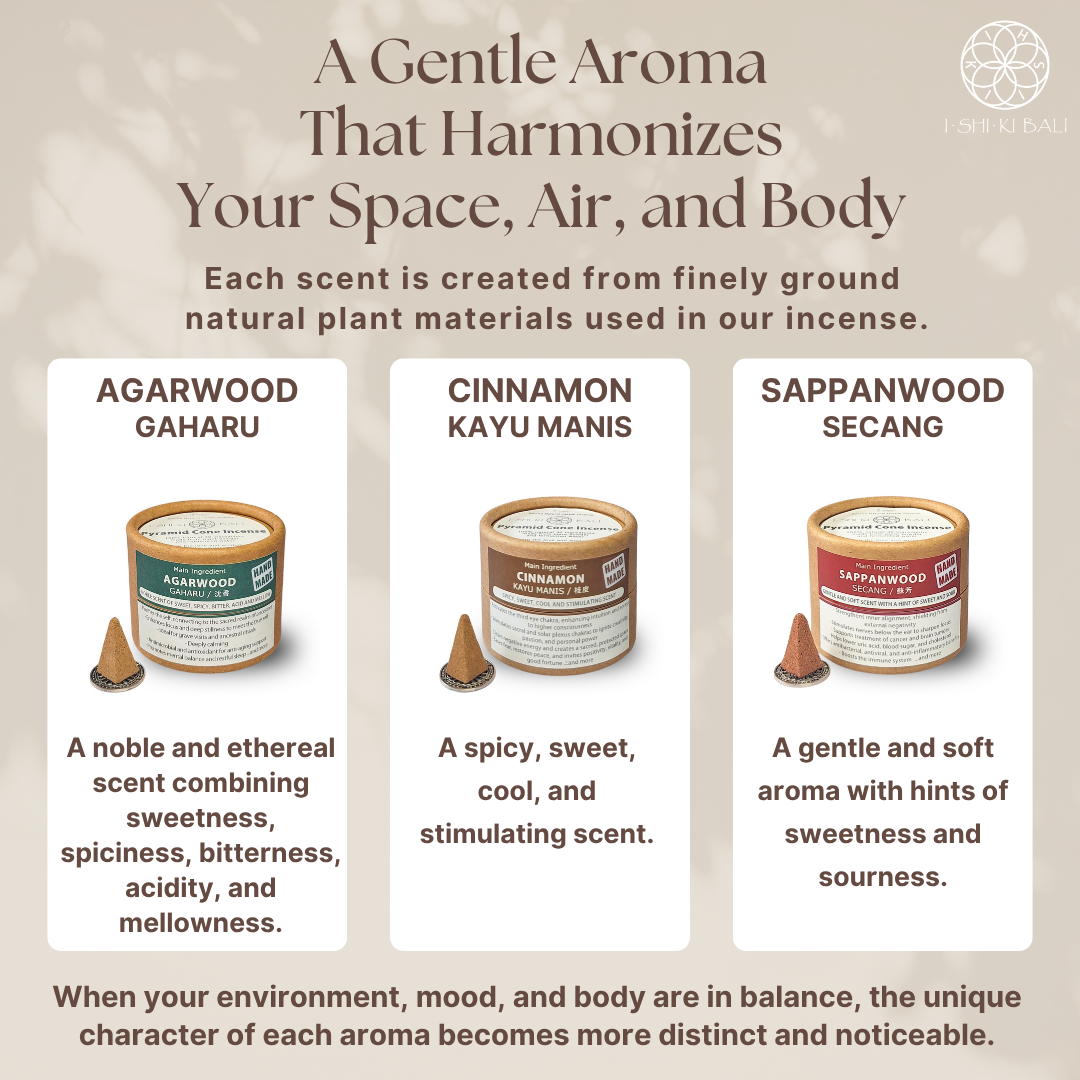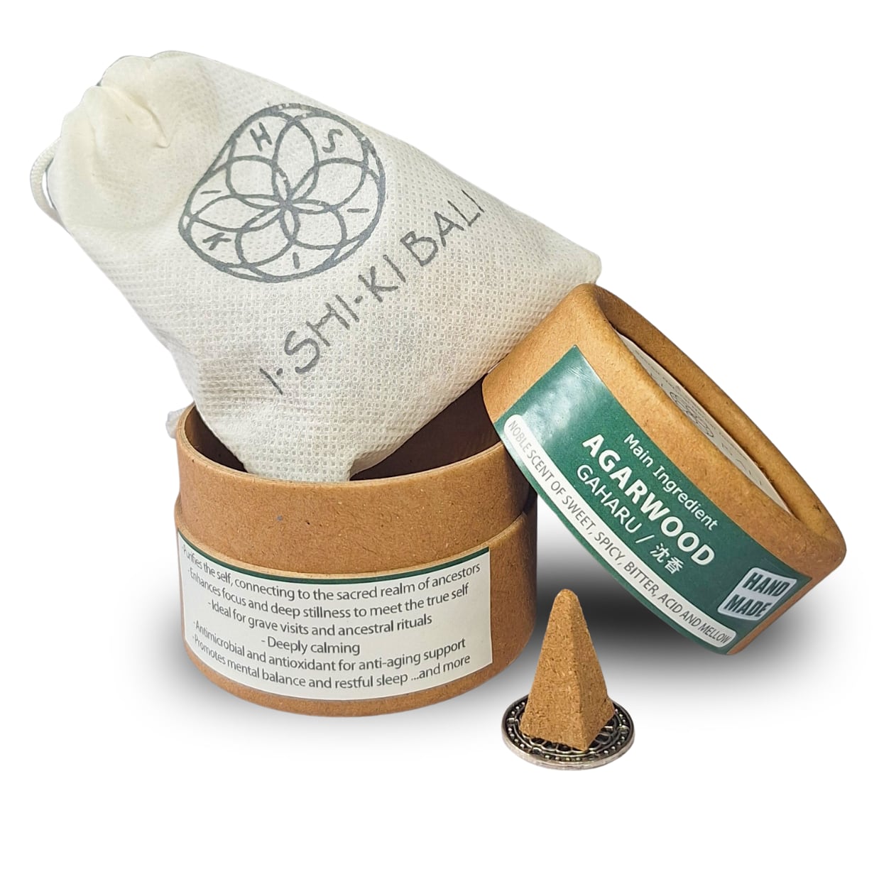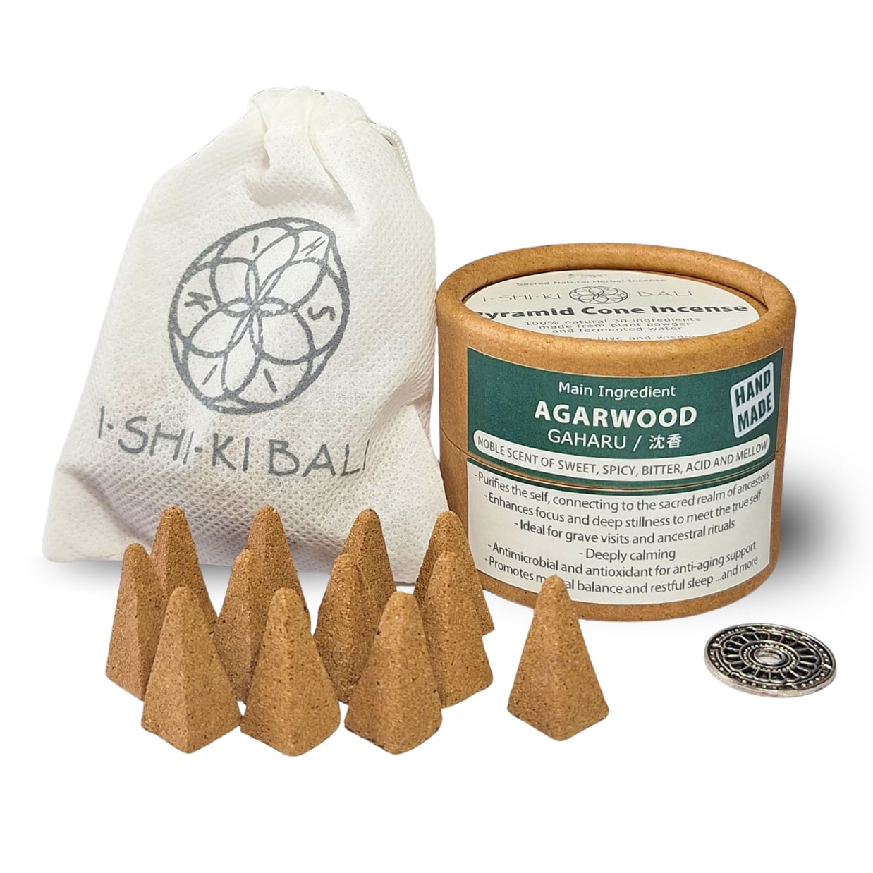 Pyramid Cone Incense with Holder – Agarwood (Gaharu): 12 Cones. Sacred Natural Herbal Incense by ISHIKI-BALI