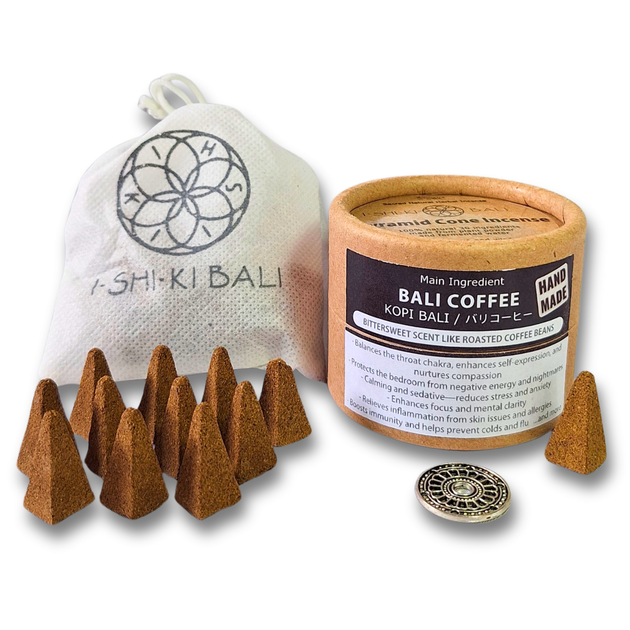 Pyramid Cone Incense with Holder – Bali Coffee : 12 Cones. Sacred Natural Herbal Incense by ISHIKI-BALI